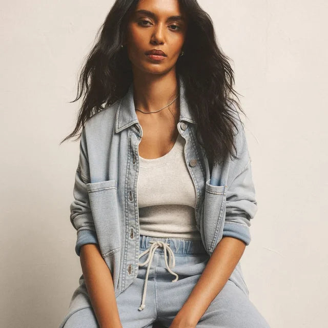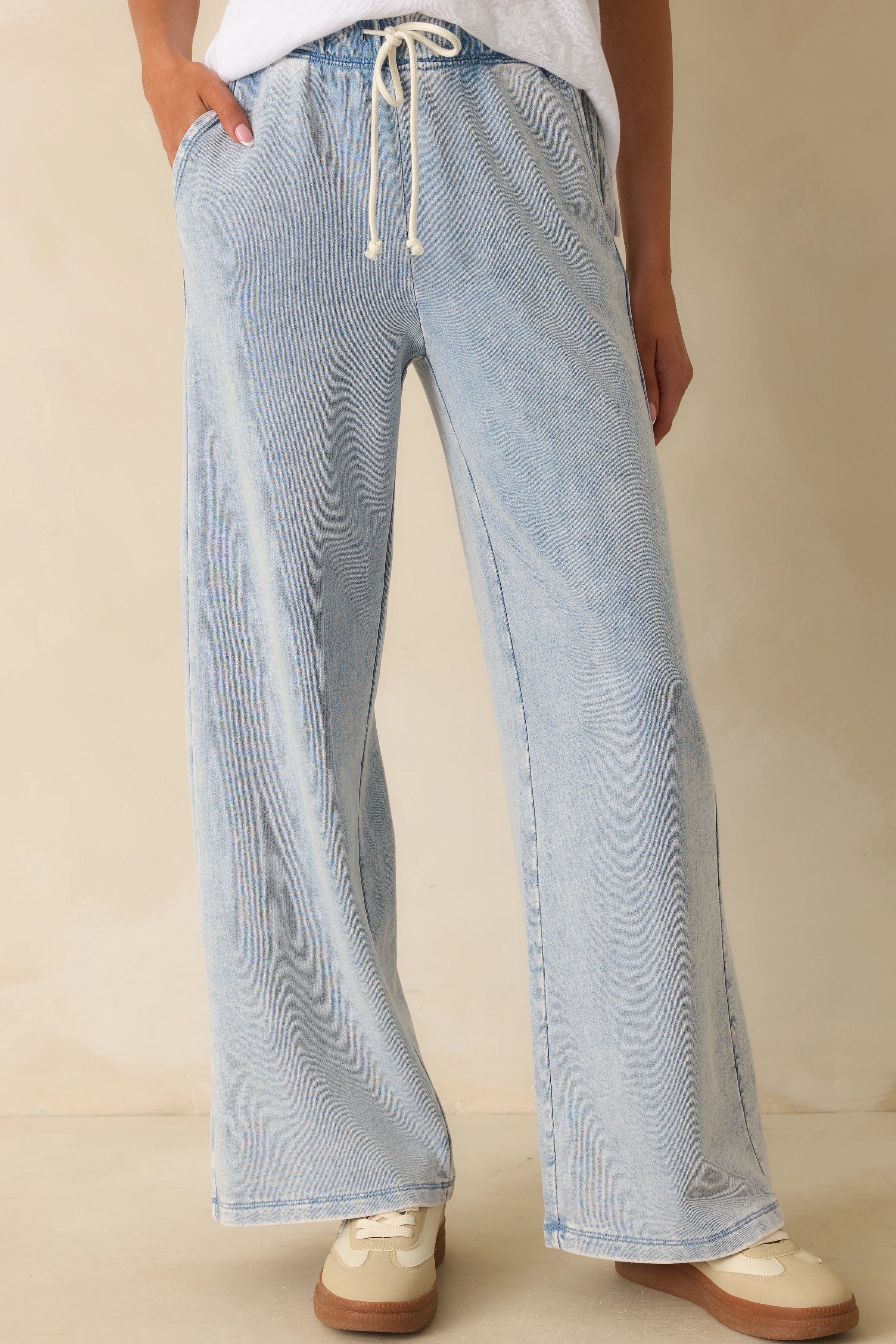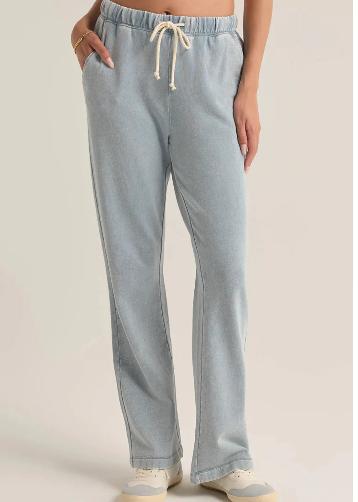 Rehaussez votre style avec le pantalon en denim tricoté Hunter de Z Supply. Doté de poches élégantes et d'une ceinture élastique à cordon de serrage, ce pantalon allie style et confort. Confectionné en denim tricoté léger, il est idéal en toute occasion. Profitez de sa coupe mi-haute, de sa longueur standard et de sa ceinture élastique pour un ajustement parfait à chaque fois !